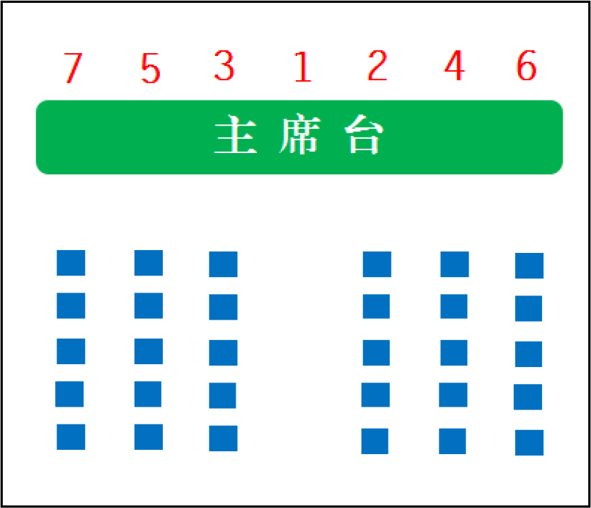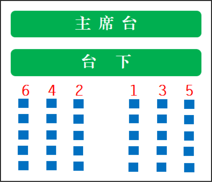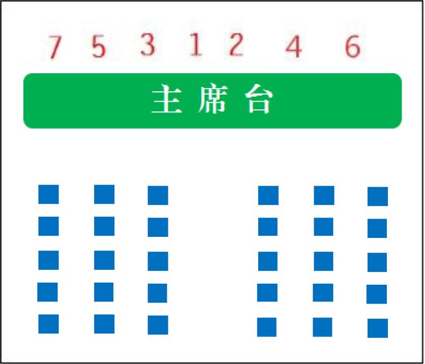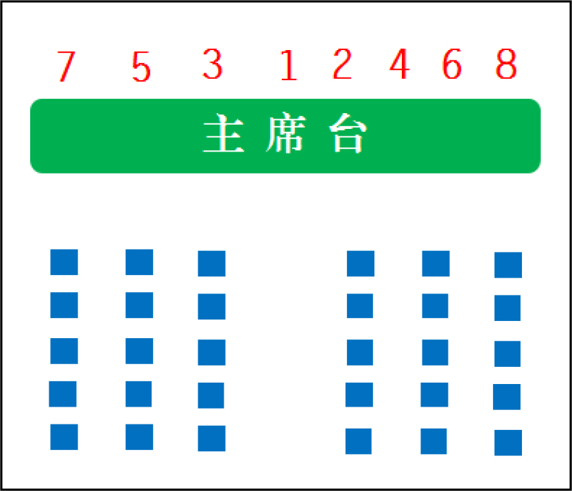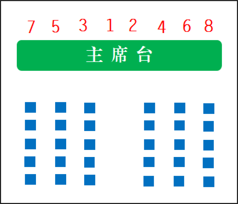 主席臺人數(shù)為偶數(shù)時(shí),座次按如下安排,見圖A.2: