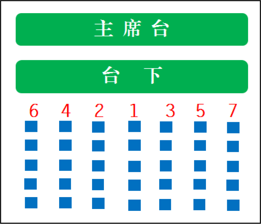 主席臺人數(shù)為奇數(shù)時(shí),座次按如下安排,見圖A.1: