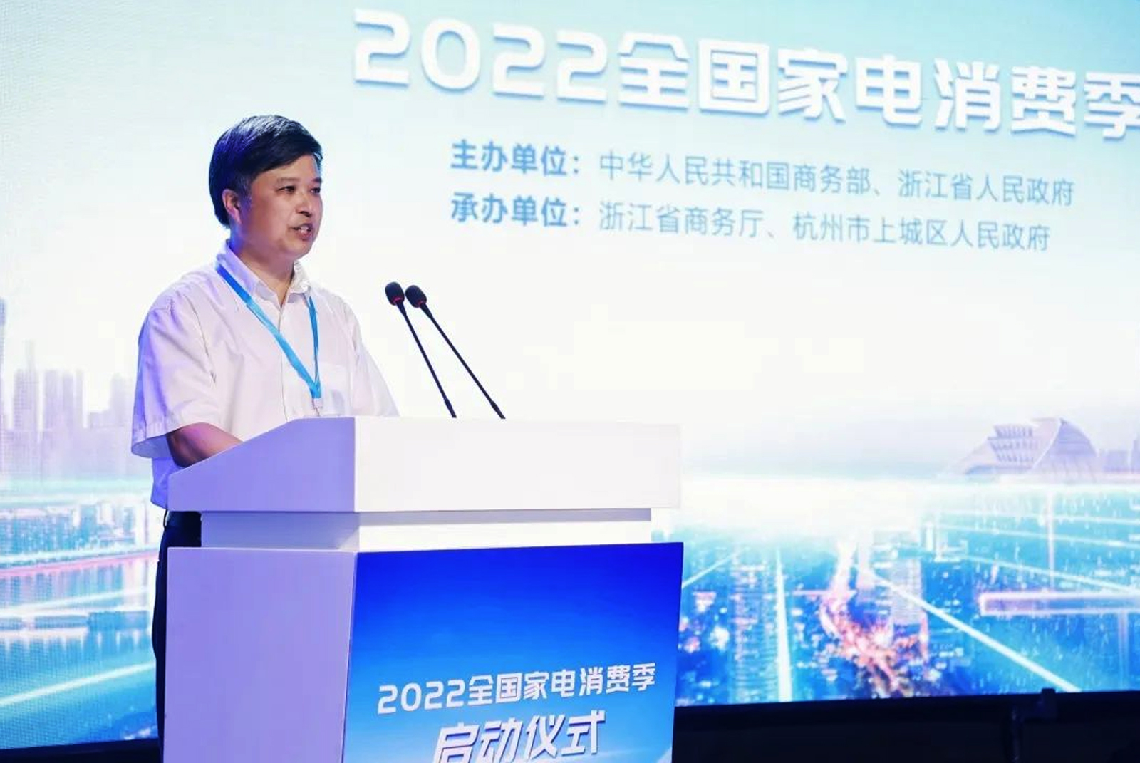 8月8日晚,由商務部和浙江省人民政府共同舉辦的“2022全國家電消費季”啟動儀式在浙江杭州舉行,拉開2022全國家電消費季的序幕。商務部副部長盛秋平、浙江省政府副省長盧山出席并致辭。商務部流通司司長劉德成、浙江省商務廳廳長韓杰、浙江省政府辦公廳副主任李耀武、杭州市政府副市長胡偉、省商務廳總經濟師朱軍、上城區委區政府等相關領導參加啟動儀式。